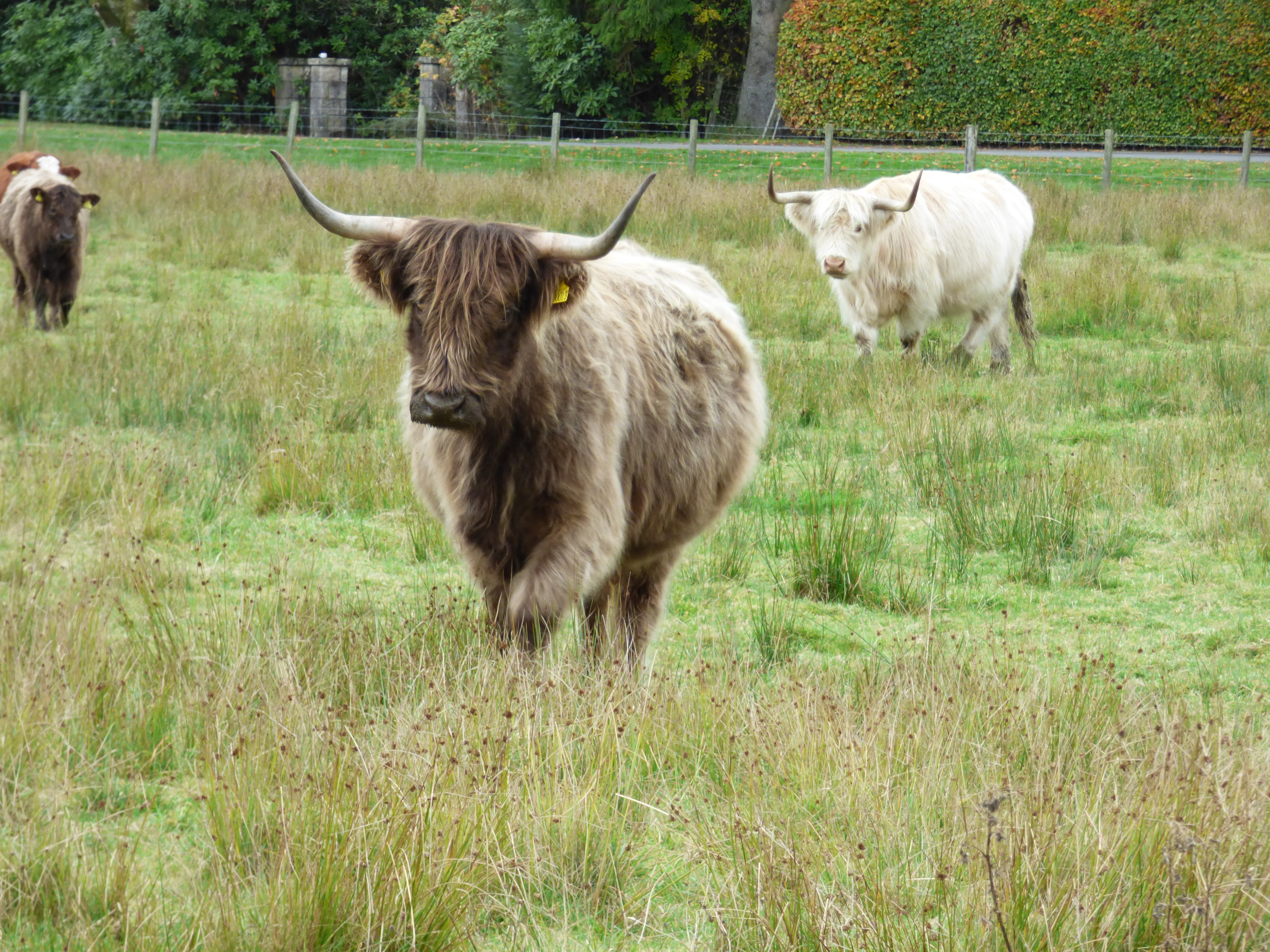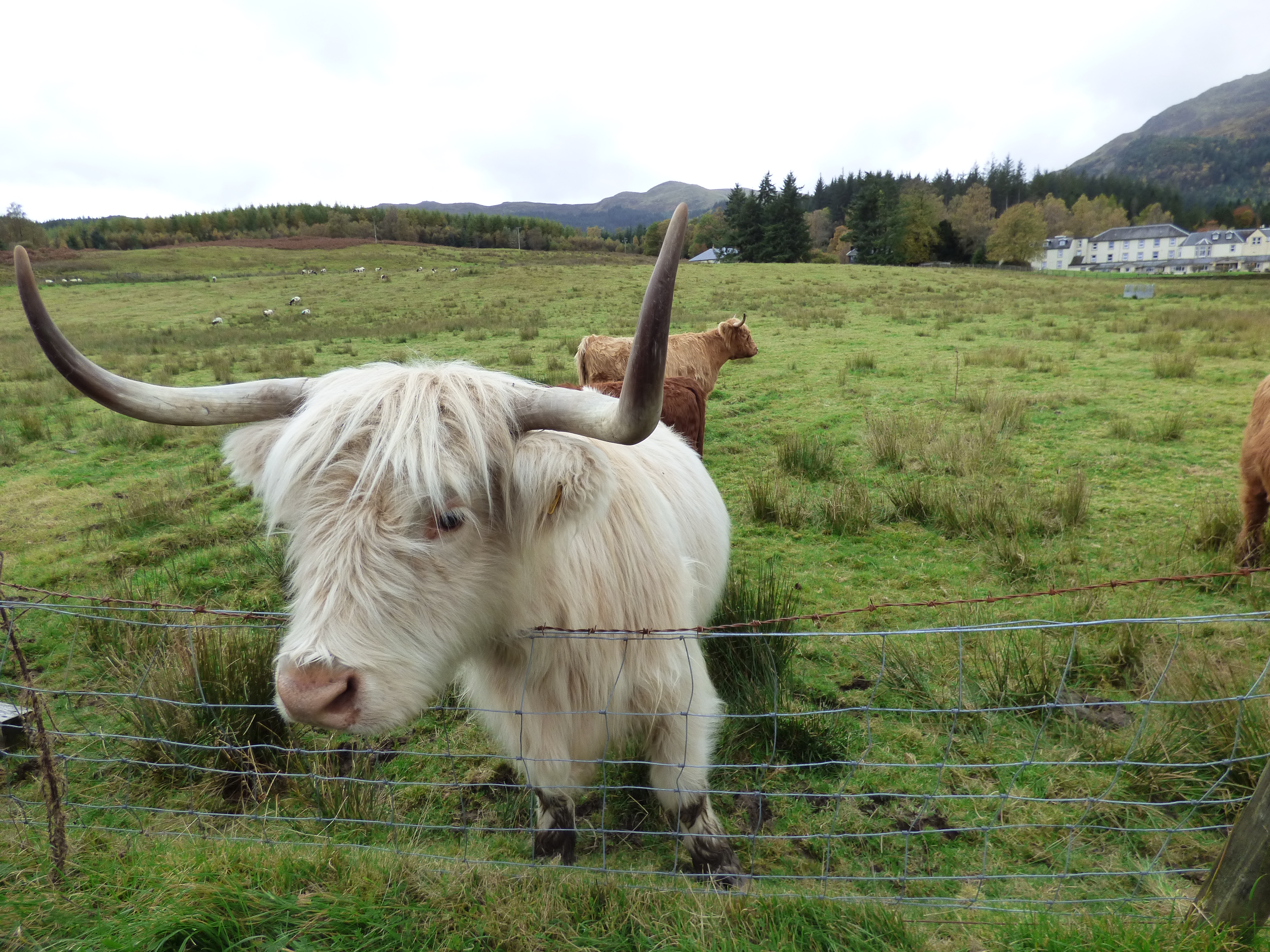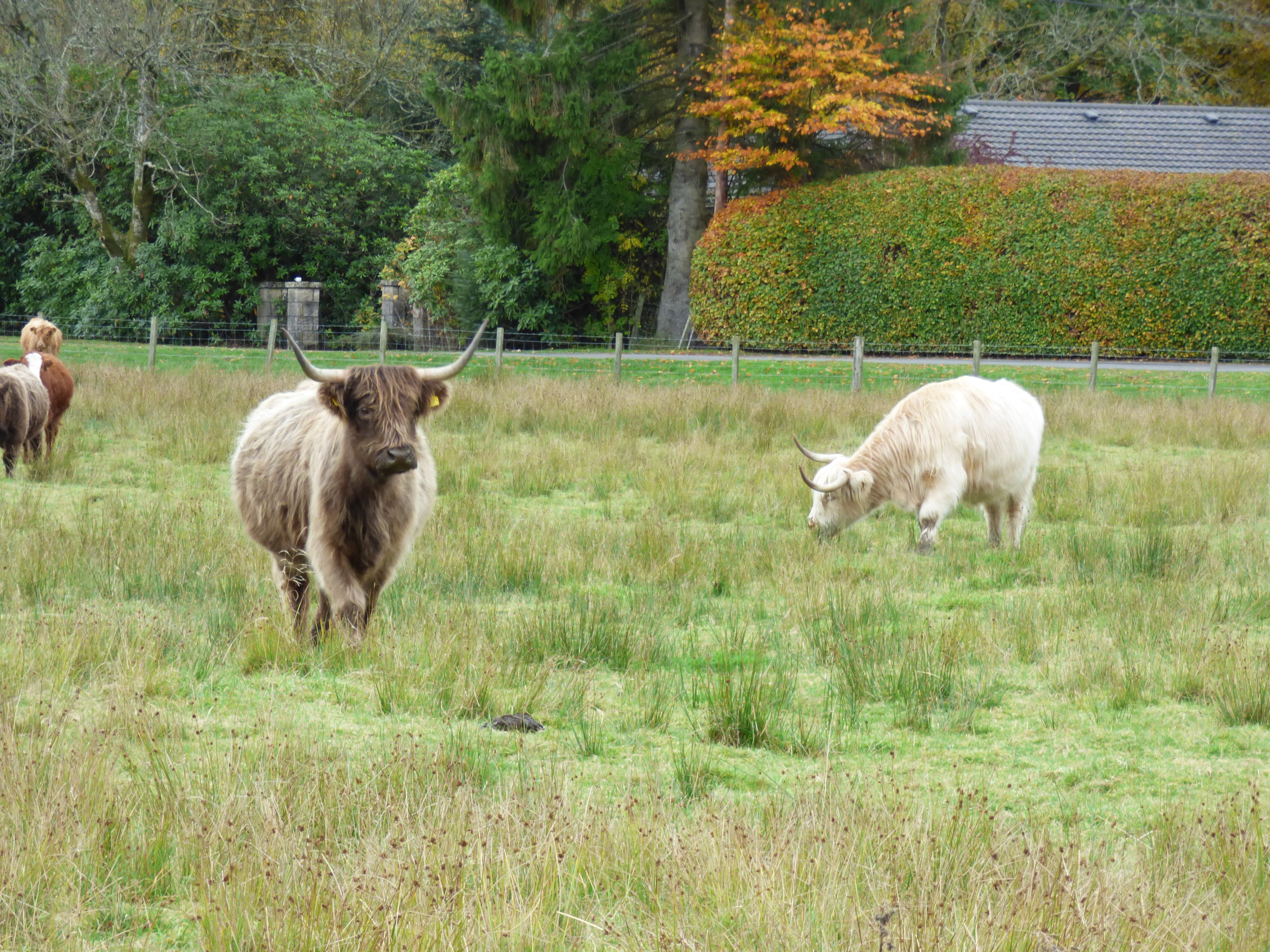 At the bottom of Dukes Pass, we stopped at a farm to try to get a view of some “hairy coos”, or Highland cows. We were lucky and were able to call the cows over to the road to take pictures and feed them some treats. Though they are very hardy and look somewhat dangerous because of their horns, they are actually very friendly.
