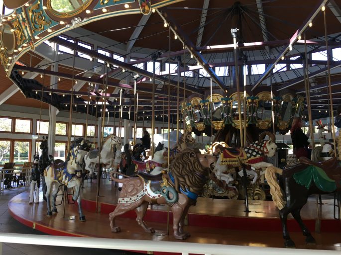 We started off at Coolidge Park, which is right next to the Tennessee River. We walked around a bit, then stopped at the Carousel. This indoors carousel is a restored 1894 Dentzel carousel, with 52 hand-carved animals and a calliope band organ. Despite being a group of adults, we payed $1 per person to ride the carousel. It is really stunning!