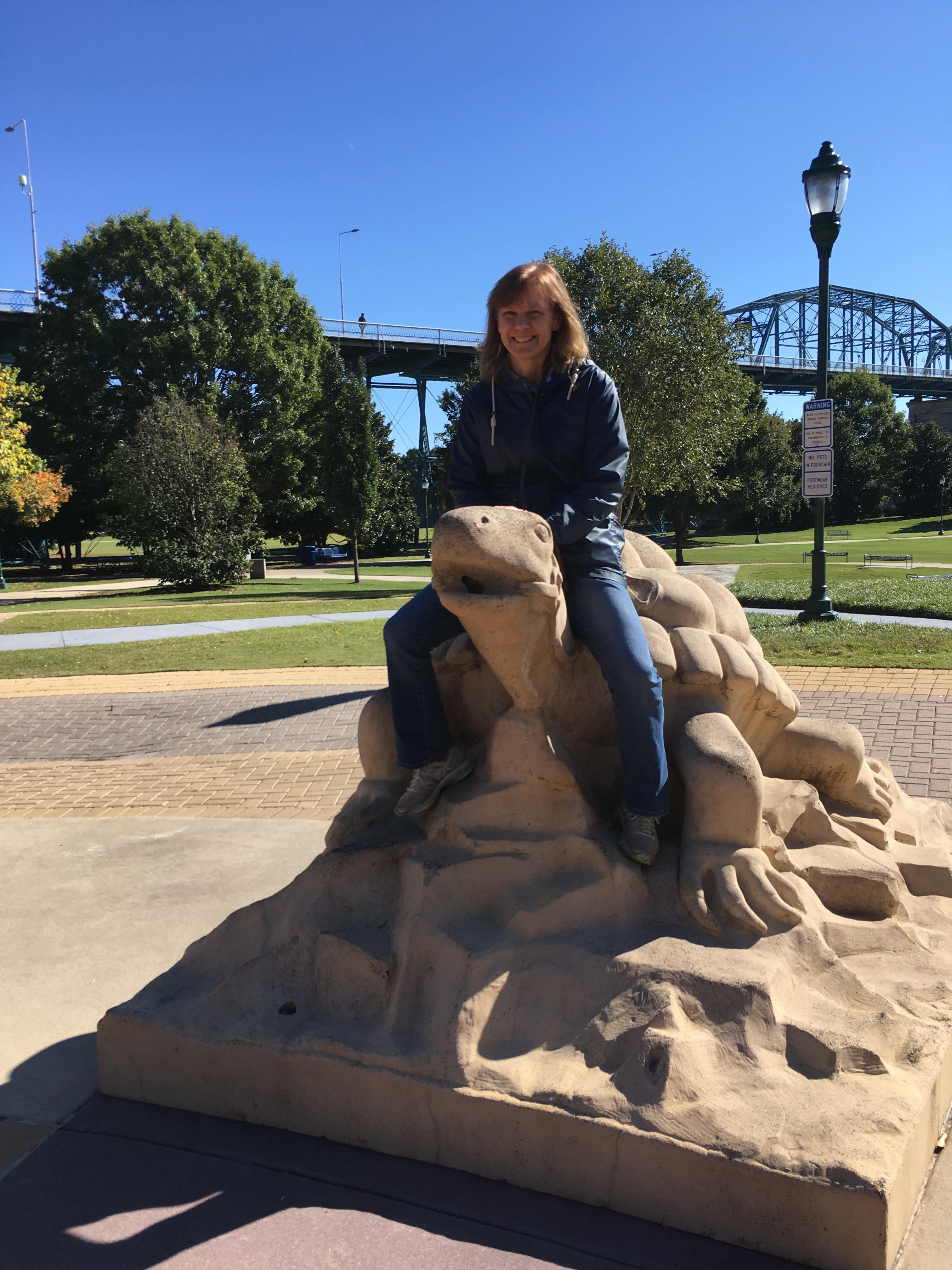 We then walked across the Tennessee River on the Walnut Street pedestrian bridge, built in 1891, to the Bluff View Art District. We saw some of the outdoor sculptures at the Hunter Museum of Art, then walked through part of the art district, including a sculpture garden.