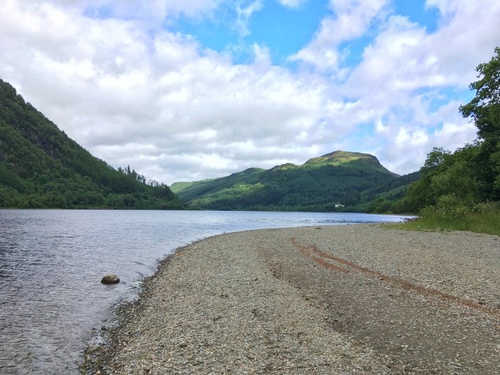 We departed Edinburgh in the early morning, and headed towards the Highlands. Our first stop of the day was at Loch Lubnaig. Scotland is home to thousands of lochs. We had time to get some hot drinks and walk along the lake briefly. Considering it was July, it was a brisk morning.