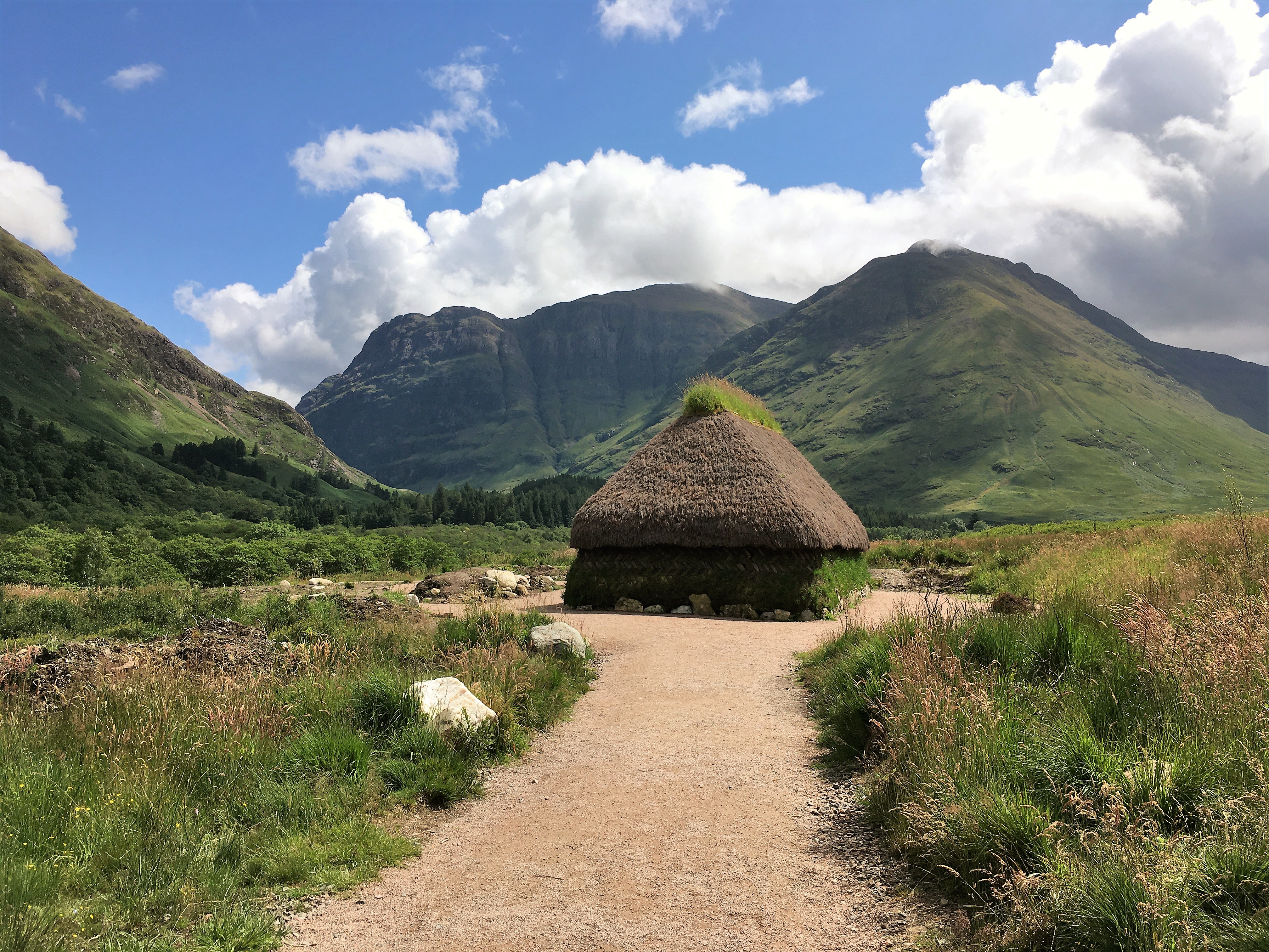 We continued on our way, stopping next in the Glencoe valley. In Scot’s Gaelic, “glen” means a deep valley. This was my second time seeing Glencoe, but that didn’t diminish the sense of awe when taking in the scenery. It’s absolutely beautiful. We stopped at a few different places to get some different views, including by the famous shepherd’s house. We had lunch at the Glencoe Visitor Centre, where we also had the chance to look at one of the traditional creel house replicas that has been built there.