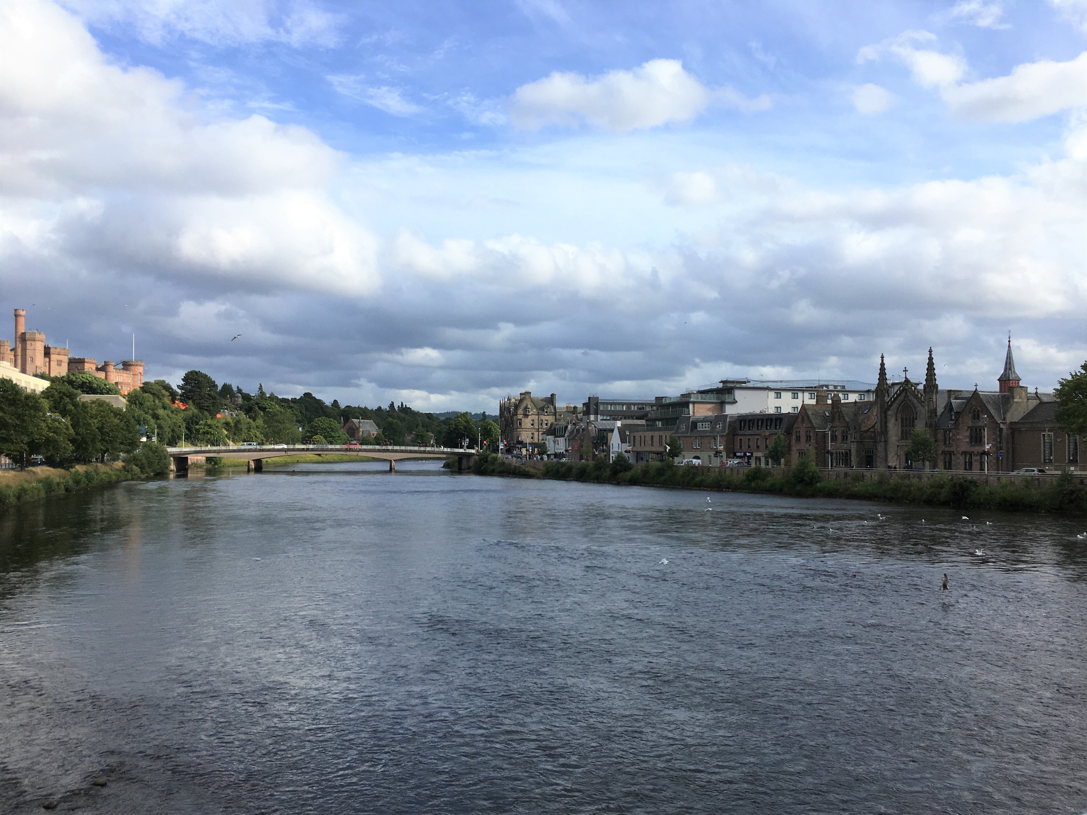 We then made our way towards Inverness, known as the capital of the Highlands, where we would be staying the night. I had spent a night in Inverness on my 2018 trip, and hadn’t been especially impressed. In retrospect, I think the problem was that we had arrived after dark, so it was hard to actually see the city. This time, I enjoyed it a lot more. We arrived early evening and were dropped off at our accommodations. I actually ended up in the same bed and breakfast as my first trip! I spent the evening walking down to the river and making a big loop, walking across one suspension bridge and coming back across the other one. It was warm and sunny, and the walk along the river was very pretty (though walking across the suspension bridges was a little scary!).