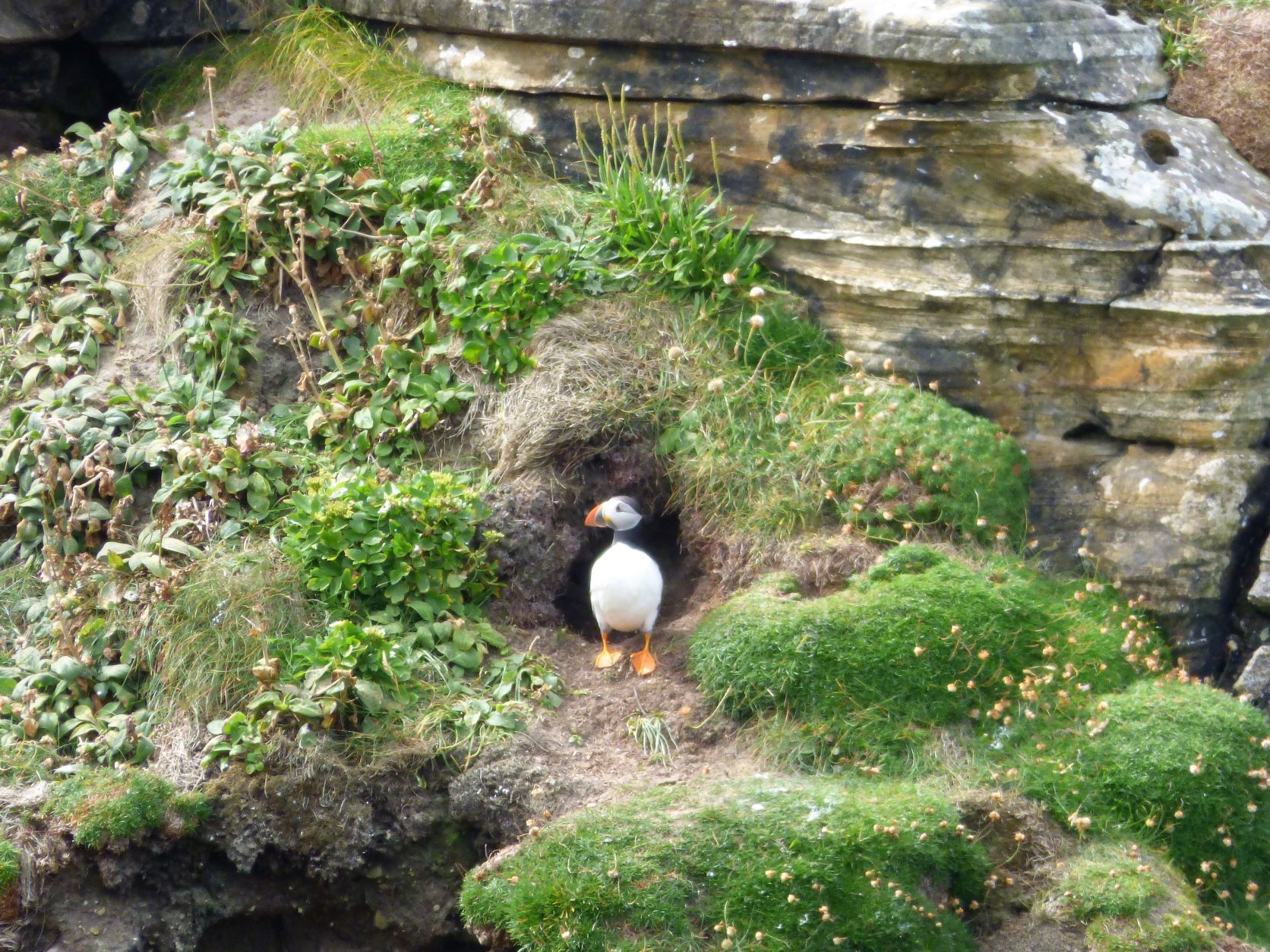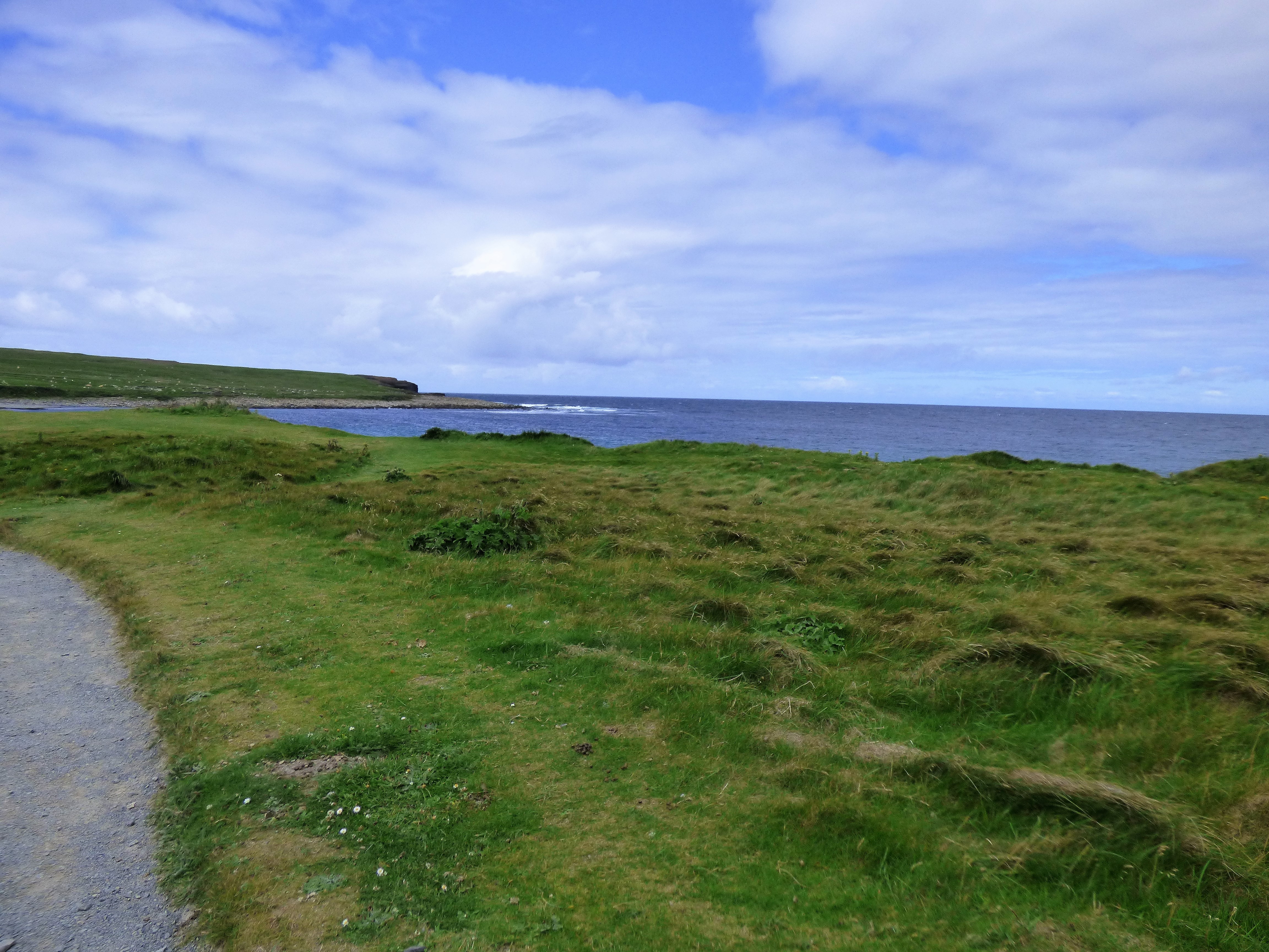 The following day was another long day of traveling. We left Inverness around 8:00 and headed north. We had to take a different route than normal because the main ferry to Orkney had been severely damaged a few days before and was grounded. Instead of taking that ferry, we instead had to take a ferry out of Scrabster. This meant we had to drive a different route than our driver was used to. We drove through a very sparse region, where most of the few buildings that we saw had been abandoned. Most of the land was bogs. We stopped at Dunnet Head at the very northern tip of Scotland. There was a lighthouse there, and expansive views of the ocean. We also got to see a number of puffins!