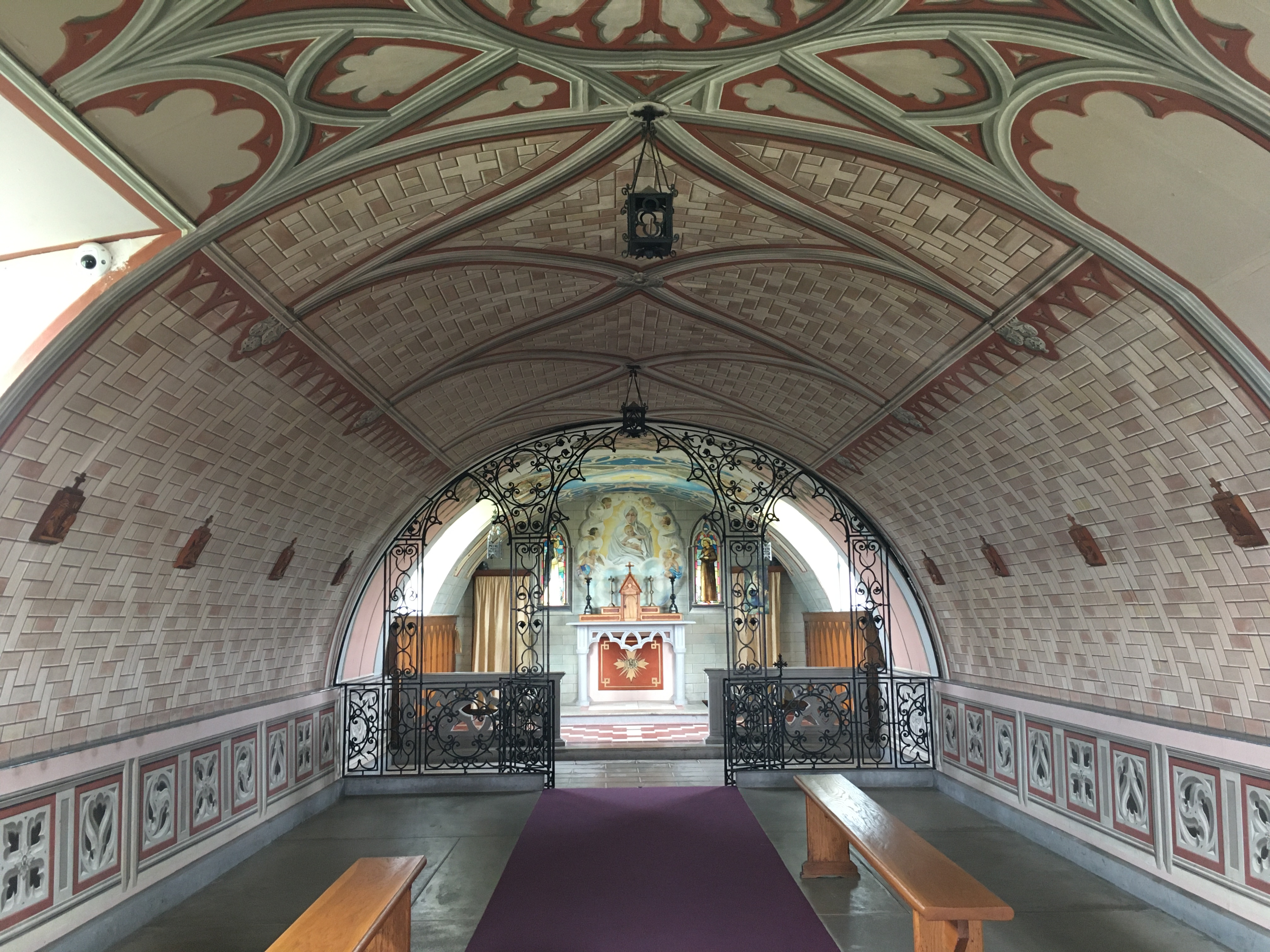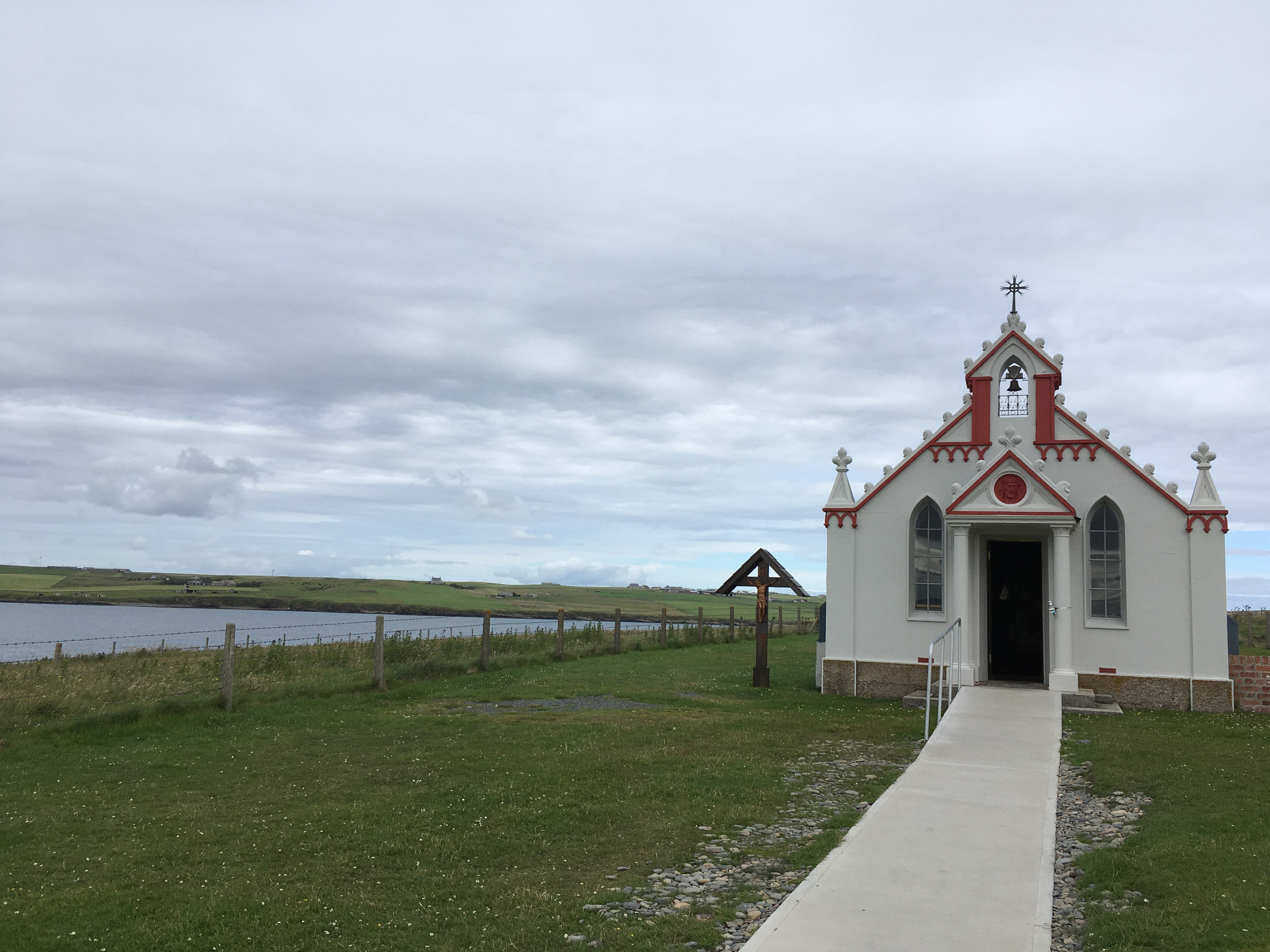 We also visited the Italian Chapel on Lamb Holm. During World War II, Italian prisoners of war were held on the Orkney Islands. These prisoners built a chapel that they could worship in. The interior was intricately painted by the prisoners to mimic the ornate architectural features typically found in an Italian chapel. The stones, paneling, and rafters are all painted.